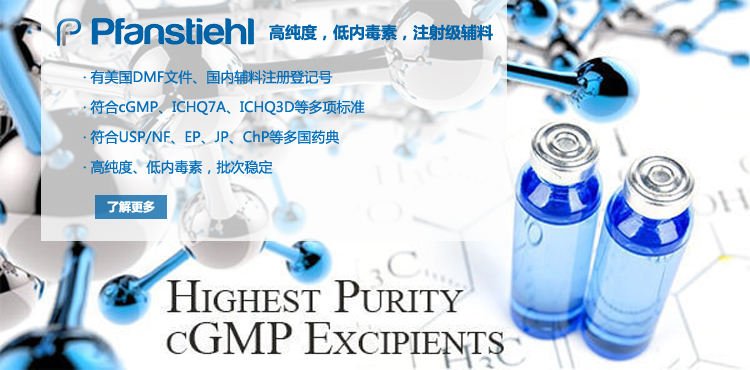 “熱烈祝賀Pfanstiehl的注射級甘氨酸Glycine(G-140)喜獲CDE登記號F20250000403, 這是Pfanstiehl產品獲得的第18個CDE登記號!”甘氨酸在醫藥輔料制劑中應用廣泛,, 可作為緩沖劑,增溶劑,穩定劑等,具有諸多優勢。Pfanstiehl秉承一貫高品質理念,為滿足全球生物制藥行業對于高品質甘氨酸的需求,隆重推出的注射級甘氨酸Glycine (G-140), 具有超高純度,超低內毒素,超低金屬殘留的特點,單獨檢測29種金屬離子,并且新增DNA,RNA,DNA酶,RNA酶和脂肪酶,亞硝酸鹽等多項質量指標的檢測,符合多國藥典規定(USP, EP, BP, JPE, ChP),可用于生物治療性藥物和疫苗的生產。產品信息:· 產品名稱:Glycine, High Purity, Low Endotoxin, Low Metals, USP, EP, BP, JPE, ChP (G-140)· 中文名稱:甘氨酸· 分子式:C2H5NO2· 分子量:75.07 g / mol· CAS號:56-40-6· 產品貨號:G-140產品特點: · 超高純度,超低內毒素,超低微生物含量,超低金屬雜質殘留· 質量指標新增DNA,RNA,DNA酶,RNA酶,脂肪酶和亞硝酸鹽檢測· 符合多國藥典:USP, EP, BP, JPE, ChP· 符合ICH Q3D標準· 符合GMP標準· 已獲DMF和CDE登記號 產品應用:· 緩沖劑· 穩定劑· 增溶劑如果您對Pfanstiehl注射級別Glycine G-140感興趣,歡迎聯系Pfanstiehl 中國區代理商北京西美杰科技有限公司獲得如下詳細的產品概況說明文件和測試樣品。Pfanstiehl Inc.最新產品系列如下,歡迎聯系北京西美杰科技有限公司獲取100g裝免費樣品。北京西美杰科技有限公司為Pfanstiehl中國代理,為客戶提供完善的技術支持與售后服務。歡迎撥打西美杰客服電話400-050-4006或者登陸網站www_xmjsci_com.edshq.com了解更多信息。 更多>